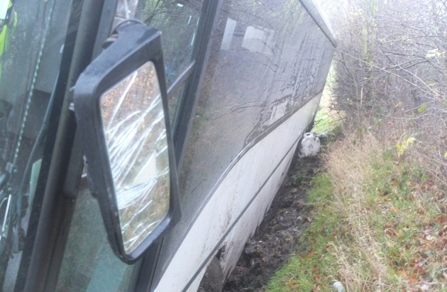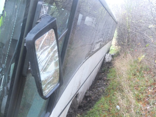 POL-DN: Bus fuhr in die Böschung