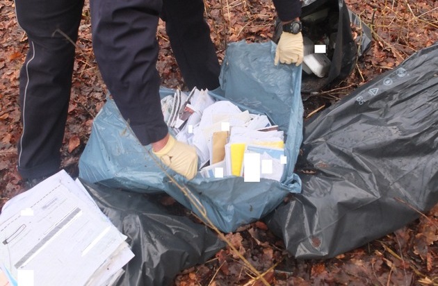 Gegen 15:00 Uhr wurde der Fund der Polizei bekannt. Zunächst als illegal abgeladener Müll eingestuft, stellten die eingesetzten Beamten bei ihrer Nachschau fest, dass in den drei blauen Säcken etliche Umschläge, die teilweise auch geöffnet waren, lagen. Den Stempeln nach stammten sie von den Monaten Oktober bis Dezember.