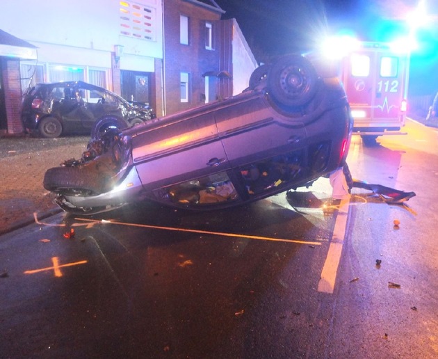 Der junge Mann aus Hürtgenwald, der erst seit April 2014 den Führerschein besitzt, war wenige Minuten vor Mitternacht auf der B 399 von Gey in Fahrtrichtung Düren unterwegs. Möglicherweise aufgrund nicht angepasster Geschwindigkeit, so die erste Bilanz der aufnehmenden Beamten, war er kurz vor der Ortseinfahrt von Birgel ins Schleudern geraten. Der Wagen kam nach rechts vom Fahrstreifen ab, prallte gegen einen schweren Findling und rutschte gegen einen im Ort geparkten Pkw. Beim Gegensteuern überschlug sich der Wagen des 18-Jährigen und blieb schließlich mitten auf der Straße auf dem Dach liegen. Der zuvor gerammte Wagen schleuderte gegen den Windfang eines Lokals. Für beide Autos nimmt die Polizei Totalschaden an; sie mussten durch Abschleppdienste von der Unfallstelle geholt werden.