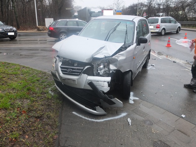 Eine 26 Jahre alte Frau aus Kreuzau befuhr um 12:15 Uhr mit ihrem Pkw die Brandströmstraße aus Richtung Heerweg in Richtung der Eisenbahnstraße. An der dortigen Einmündung beabsichtigte sie, nach links auf die Eisenbahnstraße zu gelangen. Zeitgleich näherte sich aus ihrer Sicht von links eine 45-Jährige aus Düren. Sie bewegte sich mit ihrem Auto in Richtung Innenstadt. Zudem stand in einem Rückstau -in entgegen gesetzter Richtung zu der Dürenerin- ein 54 Jahre alter Kölner mit seinem Lkw. Dieser hatte eine Lücke von mehreren Metern zu dem vor ihm wartenden Fahrzeug gelassen, in die die Kreuzauerin nun einscheren wollte. Hierbei übersah sie offensichtlich aus bislang ungeklärter Ursache die spätere Kontrahentin und prallte mit ihrer Fahrzeugfront in die Seite des Wagens der Dürenerin. Hierdurch schleuderte die 45 Jahre alte Frau herum und prallte gegen den wartenden Kölner Lkw.