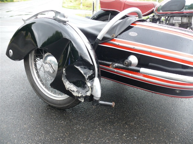 Nachdem er bei Grünlicht angefahren war, übersah er jedoch den ihm entgegen kommenden und bevorrechtigten Kradfahrer. Es kam zum Zusammenstoß mit dem Gespann (Krad mit Beiwagen, Horex Regina), dessen 72 Jahre alter Lenker aus Erkelenz dabei leicht verletzt wurde.