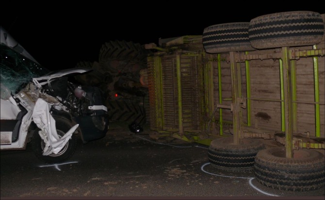 Der Unfallverursacher verletzte sich leicht, der 57-Jährige blieb unverletzt. Der Kleintransporter war nicht mehr fahrbereit und wurde von einem Abschleppunternehmen von der Unfallstelle entfernt. Der Traktor samt Anhänger konnte vom Fahrer unter Mithilfe eines Angehörigen mit eigenen Mitteln wieder aufgerichtet werden und blieb weiterhin fahrbereit.
