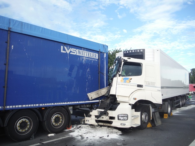 Zwei glücklicherweise nur leicht verletzte Lkw-Fahrer, aber hoher Sachschaden - so lautet das Resultat eines Verkehrsunfalls, der am Samstagmorgen zu einer temporären Sperrung der B 56 bei Düren führte.