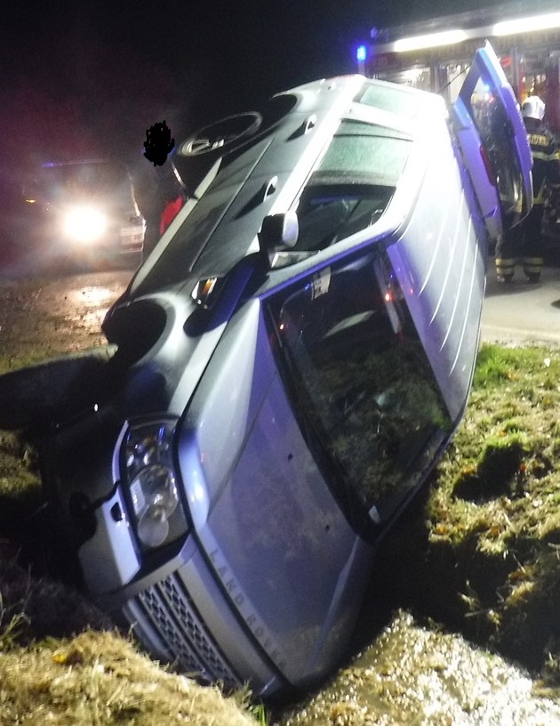 Gegen 18:00 Uhr war ein 20-Jähriger aus Düren mit seinem Fahrzeug auf der K 28 von Vettweiß in Richtung Soller unterwegs. Ausgangs einer scharfen Linkskurve wollte der junge Mann nach rechts in einen Feldweg abbiegen, um dort zu wenden. Nach eigenen Angaben unterschätzte er dabei seine Geschwindigkeit. In der Folge kippte das Auto auf die linke Seite. Die Insassen, der Fahrer und zwei Mitfahrer, kletterten selbständig über die Beifahrerseite aus dem Fahrzeug. Während der Fahrer und ein 46-jähriger Dürener unverletzt blieben, musste für eine 25-jährige Frau aus Düren ein Rettungswagen bestellt werden. Sie wurde zur Behandlung in ein Krankenhaus gefahren, dass sie voraussichtlich nach ambulanter Behandlung verlassen konnte. Es entstand Sachschaden in Höhe von circa 5000 Euro.