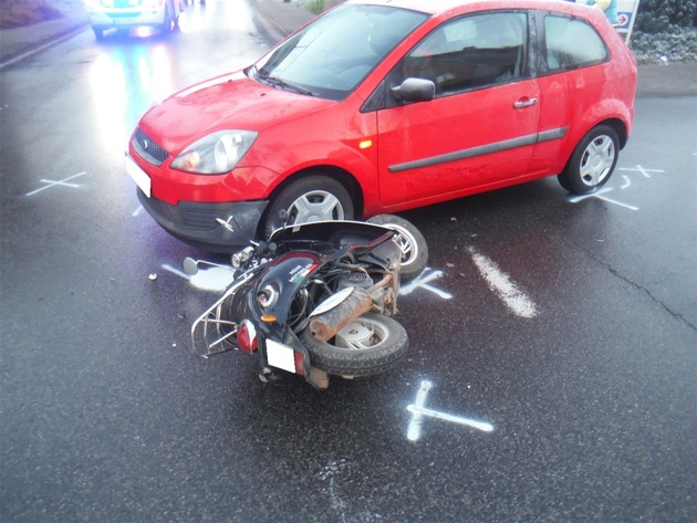 POL-DN: Unfall mit verletzter Motorrollerfahrerin