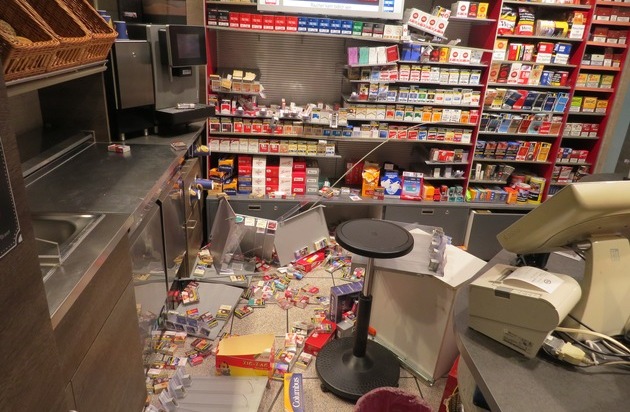 Zwei bislang unbekannte Täter drangen am frühen Mittwochmorgen in eine Tankstelle in der Ortslage Niederau. Ersten Ermittlungen nach entwendeten sie Tabakwaren.