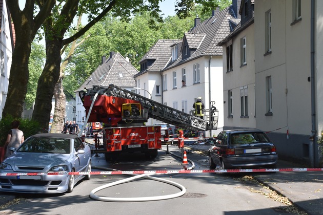 Da die Flammen aus dem Fenster auch unter die Dachkante schlugen, musste teilweise einzelne Bereiche des Daches aufgenommen werden, um dort versteckte Glutnester abzulöschen. Abschließend wurden noch Nachbarwohnungen nach Brandrauch kontrolliert.