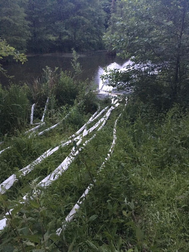 Eine dieser Pumpen wurde noch am Abend durch die Freiwillige Feuerwehr Kirchhörde im Rombergpark in Stellung gebracht. Um die Pumpzeit zu verringern, wurden zusätzliche Fahrzeugpumpen parallel eingesetzt. Hierdurch konnten die Arbeiten bereits gegen zwei Uhr in der Nacht beendet werden.