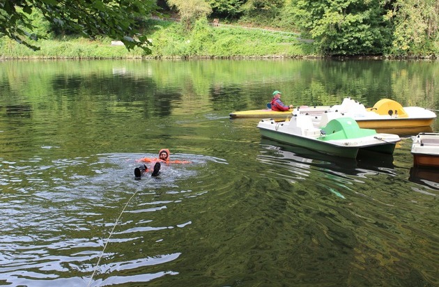 Syburg - Spaziergänger bemerkten heute Mittag kurz nach 12:30 Uhr auf der Ruhr, kurz vor dem Hengsteysee, einen hilflos treibenden Schwan und alarmierten die Feuerwehr. Die Einsatzkräfte der Feuerwache 4 (Hörde) entdeckten nach einer Erkundung den hilflosen Schwan im Bereich der Tretbootstation. Augenscheinlich hatte der Schwan etwas um den Hals geschlungen und benötigte dringend Hilfe. Ein Feuerwehrmann schwamm mit einem Wasserrettungsanzug geschützt und mit einem Seil gesichert zu dem Schwan und holte ihn ans Ufer. Bei genauer Untersuchung, stellte sich heraus, dass er nichts um den Hals geschlungen hatte, sondern sein Verhalten wohl anders begründet sein musste. Der Schwan wurde von den Einsatzkräften zum Parkplatz an den Serpentinen getragen und dort dem ebenfalls alarmierten Gerätewagen - Tiertransport der Feuerwehr (Feuerwache Marten) übergeben. Mit diesem wurde der verletzte Schwan einer Tierklinik zugeführt.