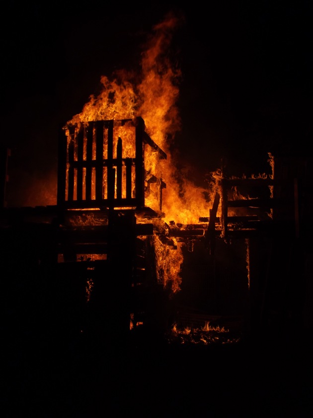 Gegen 22:30 Uhr rückten die 10 Einsatzkräfte das erste Mal aus. Auf dem umzäunten Gelände des Abenteuerspielplatzes brannte eine Holzkonstruktion.