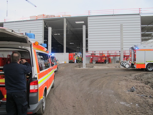 Aus ungeklärter Ursache stürzte am frühen Nachmittag ein 41-jähriger Bauarbeiter bei Dacharbeiten auf einer Großbaustelle für ein neues Logistikzentrum zwölf Meter in die Tiefe und verletzte sich dabei schwer.