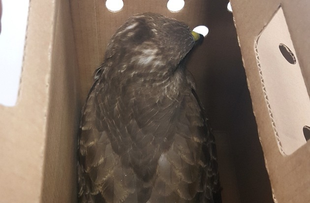 Aufmerksame Autofahrer bemerkten gegen 10 Uhr einen hilflosen Vogel auf der Danziger Straße stadtauswärts. Dieser befand sich auf dem linken Fahrstreifen und war augenscheinlich flugunfähig. Umgehend wurden ein Kleineinsatzfahrzeug der Feuerwache Flughafenstraße, unterstützt durch ein Löschfahrzeug zur Absicherung, zum Unglücksort alarmiert. Der Greifvogel, ein Bussard, wurde vorsichtig aufgenommen und zur weiteren Untersuchung in das Tierheim Düsseldorf in Rath, an der Rüdigerstraße, gefahren.