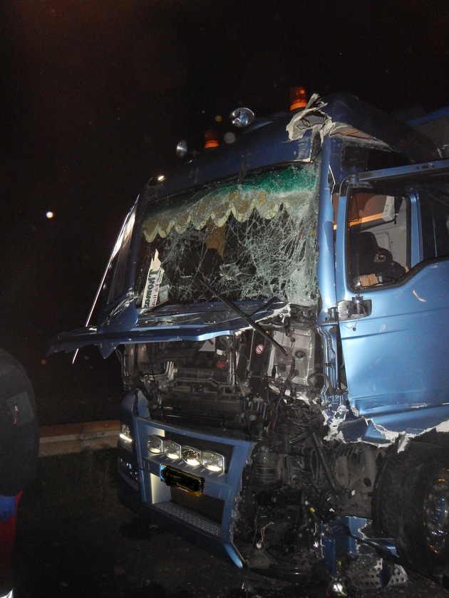Am frühen Morgen kam es auf der BAB 61 in Fahrtrichtung Koblenz zwischen den Anschlussstellen Wickrath und Güdderath zu einem Unfall mit zwei LKW samt Anhängern. Bei dem Unfall wurden der Anhänger des vorderen LKW und die Zugmaschine des zweiten LKW stark beschädigt. Beim Eintreffen der Rettungskräfte rutschte der Fahrer des hinteren Fahrzeuges auf den Beifahrersitz und konnte dort erstversorgt werden. Hiernach wurde er in ein nahe gelegenes Krankenhaus transportiert. Die Polizei übernahm die Absicherung der Unfallstelle. Im Anschluss an die Rettungsmaßnahmen wurde die Einsatzstelle der Polizei übergeben.