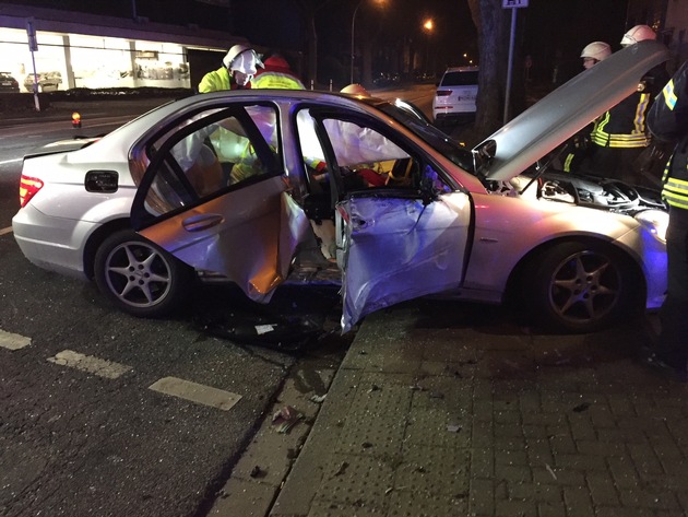 Am späten Abend des Altweiberdonnerstags kam es im Kreuzungsbereich Krefelder Straße/Zeppelinstraße zum Zusammenstoß zweier PKW. In einem der Fahrzeuge saßen zwei Frauen, die nur leicht verletzt wurden. Im zweiten Fahrzeug befand sich nur der Fahrer. Dieser war bewusstlos und musste von den Rettungskräften schonend aus seinem Fahrzeug befreit werden. Alle Unfallbeteiligten wurden zu geeigneten Unfallkliniken gefahren. Ein Laternenmast wurde ebenfalls in Mitleidenschaft gezogen, hier waren keine weiteren Maßnahmen erforderlich. Die Einsatzstelle wurde im Anschluss zur Ermittlung des Unfallherganges an die Polizei übergeben. Der Kreuzungsbereich blieb für etwa eine Stunde nahezu vollständig gesperrt.