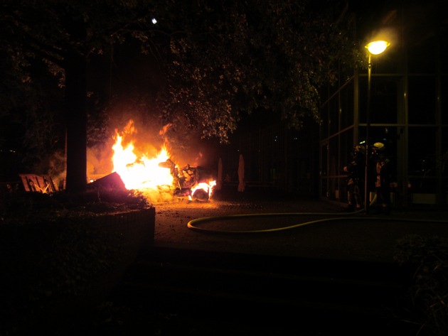 In der Nacht zum Sonntag um 03.30 Uhr wurde die Feuerwehr Mülheim zu mehreren Brandeinsätzen gerufen. Vor der Gaststätte am Ringlokschuppen in der Müga brannte ein Englischer Oldtimerbus in voller Ausdehnung. Der Brand wurde schnell von einem Löschfahrzeug abgelöscht. Parallel kamen in der Nacht noch zwei weitere Einsätze dazu. Auf der Bergstraße an der Volkshochschule brannte ein Müllcontainer, auf der Cäcilienstraße eine Mülltonne vor einem Wohnhaus. Die Brände wurden ebenfalls schnell von ausgerückten Tanklöschfahrzeugen abgelöscht. Die Brandursache hierfür ist unklar. Es handelt sich vermutlich um Brandstiftung, die Polizei ermittelt. (T.He)