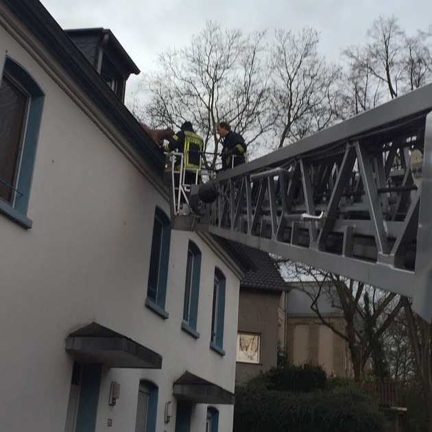 FW-MH: Pitbull macht Ausflug auf ein Häuserdach