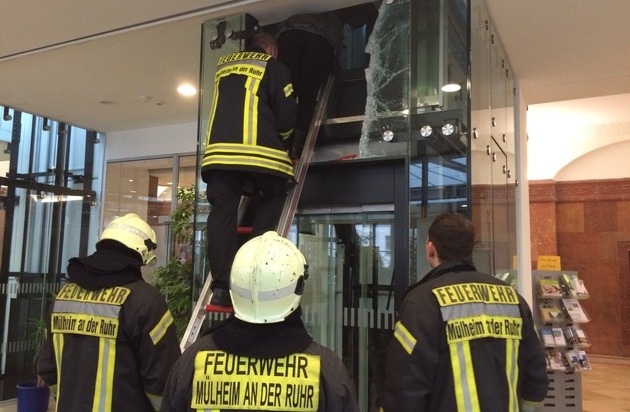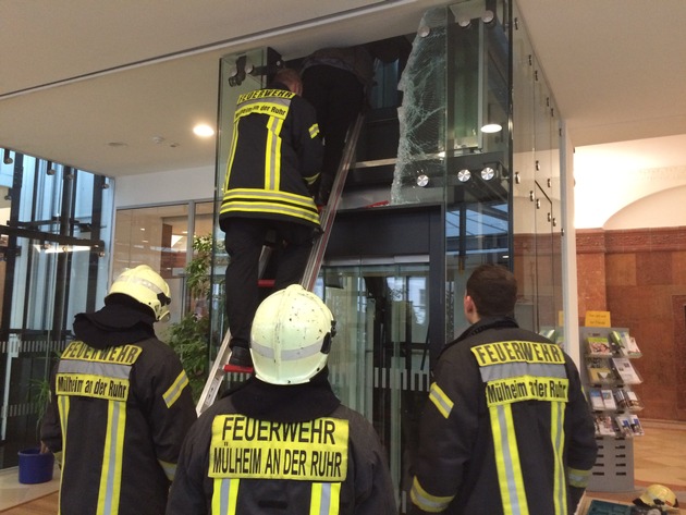 Um 13:42 Uhr wurden die Einsatzkräfte zu einem Einsatz an der Ruhrstraße gerufen. Vor Ort stellte sich die Lage so dar, dass zwei Personen in einem Aufzug eingesperrt waren und dieser nicht mehr fuhr. Da der Aufzug auch im Notbetrieb nicht mehr anzusteuern war, mussten die Personen mit Hilfe von technischem Gerät und tragbaren Leitern der Feuerwehr befreit werden. Beide Personen blieben bei diesem Einsatz unverletzt.