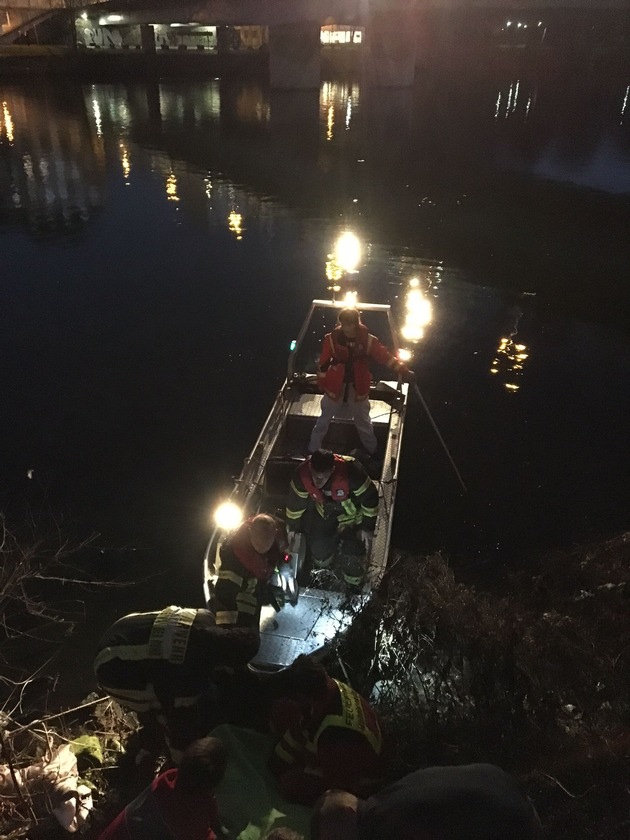 Vor Ort waren zwei Mitarbeiter des Mülheimer Stadtmarketing und Tourismus und ein weiterer Besucher der dortigen Veranstaltung in die Ruhr gesprungen und hatten die im Wasser befindliche Person an das Ufer gerettet. Bei Eintreffen der Kräfte wurde die Person unmittelbar an den Rettungsdienst übergeben und zunächst vor Ort behandelt. Da im dortigen Uferbereich eine circa zwei Meter hohe Mauer die schonende Rettung behinderte wurde das bereits zu Wasser gelassene Rettungsboot der Feuerwehr zum Patiententransport an das gegenüberliegende Ufer benutzt. Ein Rettungswagen brachte die Person anschließend in ein örtliches Krankenhaus. Einer der Ersthelfer wurde ebenfalls mit Verdacht auf Unterkühlung behandelt und vorsorglich in ein Krankenhaus gebracht. Da bereits die Dämmerung eingesetzt hatte wurde die Einsatzstelle von der Schloßbrücke ausgeleuchtet. Die DLRG unterstützte die Rettungsmaßnahmen.