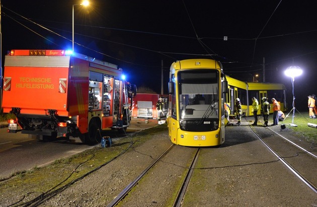 FW-MH: Entgleiste Straßenbahn sorgt für aufwendigen Feuerwehreinsatz
