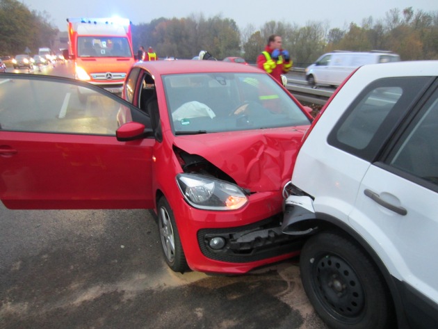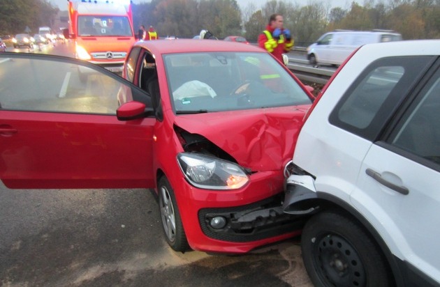 Um 07.27 Uhr wurde der Leitstelle der Berufsfeuerwehr Mülheim an der Ruhr ein Verkehrsunfall mit mehreren Verletzten auf der BAB 40 in Fahrtrichtung Essen, auf Höhe der Hardenbergbrücke, gemeldet. Es wurden umgehend ein Rüstzug sowie mehrere Rettungsdienstfahrzeuge zur Einsatzstelle entsandt. Vor Ort waren drei PKW in den Unfall verwickelt, wovon zwei aufeinander gefahren waren. An dem Unfall waren insgesamt 4 Personen beteiligt, die bei Eintreffen der Feuerwehr bereits selbstständig die Fahrzeuge verlassen hatten. Alle Personen wurden durch den Rettungsdienst und den Notarzt gesichtet, medizinisch versorgt und anschließend in umliegende Krankenhäuser gebracht. Die Feuerwehr sicherte die Unfallstelle, streute auslaufende Betriebsmittel ab und stellte den Brandschutz sicher. Nach ca. 60 Minuten war der Einsatz für die Feuerwehr beendet.
