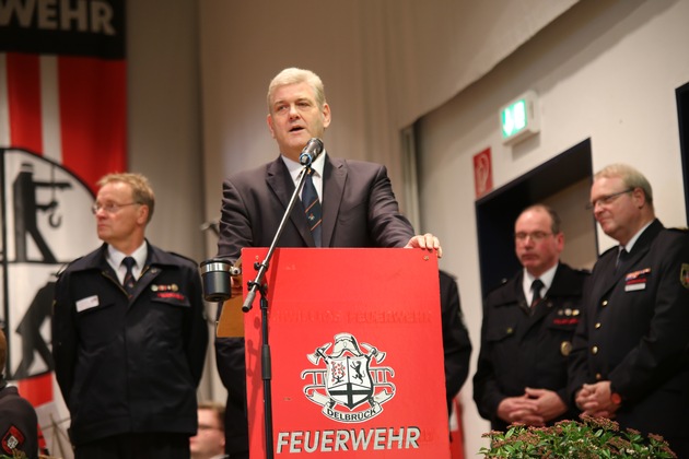 Delbrücks Bürgermeister Werner Peitz bezeichnete die Kameradinnen und Kameraden der Alters- und Ehrenabteilung als Leuchttürme in der Gesellschaft, an denen sich andere Menschen ausrichten könnten.