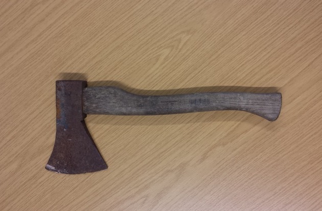"Ein Mann mit einer Axt" wurde am frühen gestrigen Abend gegen 17:45 Uhr dem Bundespolizeirevier Stuttgart gemeldet. Ein 31-Jähriger Mann mit einer kleinen Handaxt hatte sich in der Bahnhofsmission aufgehalten und dort ein Getränk zu sich nehmen wollen. Er war friedlich, bis eine Mitarbeiterin versuchte, ihm das Werkzeug, welches er neben sich abgelegt hatte, wegzunehmen. Anschließend verhielt er sich aggressiv, griff aber niemanden an und drohte wohl auch keinem. Anschließend verließ die Person die Bahnhofsmission und setzte sich am Bahnsteig 15 in einen Zug, wo er sich von den alarmierten Beamten der Bundespolizei widerstandslos in Gewahrsam nehmen ließ. Der Mann gilt als psychisch auffällig und wurde anschließend in ein Zentrum für Psychiatrie verbracht. Die Axt wurde sichergestellt.