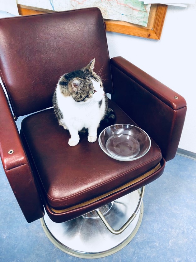 Er lief immer wieder hin und her, von der Stadtbahnhaltestelle, über die Bäckerei in der Bahnhofshalle bis zu den Bahnsteigen und über Gleise. "Charlie", so nannten unsere Kollegen des Bundespolizeireviers Heilbronn liebevoll den gemütlichen Kater, löste am frühen Mittwochmorgen (09.05.2018) einen Polizeieinsatz aus. Gegen 06.30 Uhr verständigten besorgte Reisende den Polizeinotruf und meldeten das umherlaufende Tier. Mitarbeiter der Deutschen Bahn sowie Polizeibeamte des Bundespolizeireviers Heilbronn kümmerten sich umgehend um den zutraulichen Kater mit sonnigem Gemüt. Diensthund war gestern, Polizeikatze ist heute? Was auf dem ersten Blick vielleicht wie ein Einstellungsgespräch mit dem Revierverantwortlichen Dieter Natterer aussieht, war in Wirklichkeit ein Personalführungsgespräch. Denn auch für Charlie gilt: Der unbefugte Aufenthalt im Gleisbereich ist verboten! Also nahm der wohlgenährte Kater auf dem Chefsessel in Natterers Büro Platz und hörte sich an, was er falsch gemacht hatte. Charlie zeigte sich einsichtig und gelobte Besserung. Schlussendlich blieb es bei einer Ermahnung für ihn. Erfreulicherweise war Kater Charlie gechipt, sodass der Tiernotdienst schnell seine Besitzerin ausfindig machen konnte. Die Wartezeit bis ihn seine Besitzerin abholte verbrachte Charlie entspannt auf dem Chefsessel bei einer kühlen Schale Wasser. Den Tweet zur Geschichte sowie ein weiteres Bild finden sie auf dem Twitterkanal der Bundespolizeidirektion Stuttgart @bpol_bw.