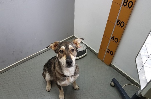 Die Größenmessung im Rahmen der erkennungsdienstlichen Behandlung nahm sie kooperativ hin. Ebbi war einsichtig und gab bellend zu verstehen, dass sie in Zukunft nicht mehr ohne Fahrkarte mit der Bahn fahren wird.