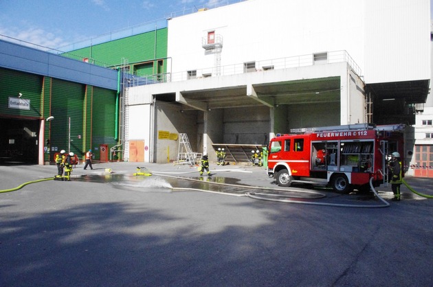 FW-MK: Freiwillige Feuerwehr und AMK-Betriebsfeuerwehr proben den Ernstfall im Müllheizkraftwerk