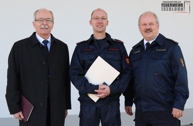 Im Rahmen der Jahresdienstbesprechung der Berufsfeuerwehr Iserlohn, wurde am 25.11.2016 Hauptbrandmeister Peter Schoof für 25 Jahre im Dienst der Feuerwehr Iserlohn das silberne Ehrenzeichen der Landesregierung überreicht. Die Ehrung wurde durch den Leiter der Feuerwehr, Christian Eichhorn, im Beisein des Leiters des Ressorts Sicherheit, Bürger und Feuerwehr, Klaus-Peter Knops, durchgeführt.