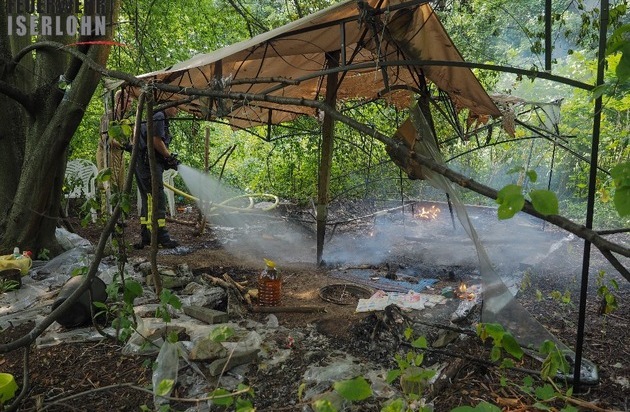 Am Freitag, um 18:08 Uhr, bemerkten aufmerksame Bürger eine Rauchentwicklung im Bereich der Straße Diepke. Nahe am Ufer, unterhalb der Brücke der Straße Diepke, hatte ein im Grünen hergerichteter Schlaf-& Lagerplatz gebrannt. Mittels eines C-Rohres wurden kleinere Glutnester abgelöscht. Die Polizei hat die Ermittlungen aufgenommen. Nur Augenblicke später, um 18:47 Uhr rückte ein Teil des Löschzuges zur Hubschrauberlandung in die Schulstraße ab. Dort landete der Rettungshubschrauber Christoph 8 aus Lünen, der zu einem internistischen Notfall nachalarmiert worden war. Ein Transport per Luftweg war nach notärztlicher Versorgung indes nicht erforderlich und der Patient wurde bodengebunden in ein Iserlohner Krankenhaus transportiert. Bei beiden Einsätzen waren jeweils 10 Einsatzkräfte der Feuerwehr Iserlohn im Einsatz.