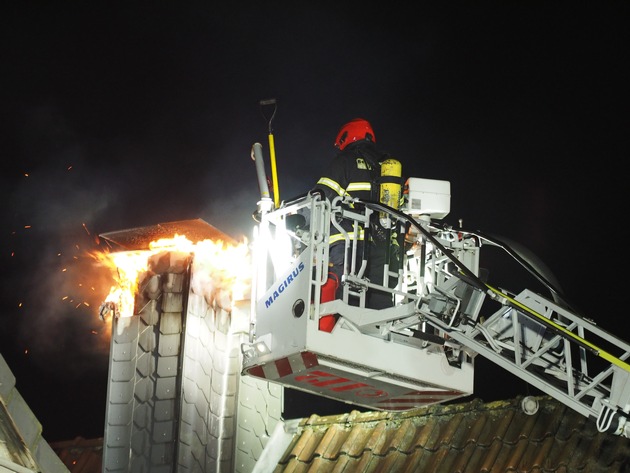 Am Mittwochabend, um 23:27 Uhr, wurde der Einsatzzentrale der Berufsfeuerwehr Iserlohn ein Kaminbrand gemeldet. Als die Einsatzkräfte eintrafen, hatten bereits alle Bewohner das Mehrfamilienhaus verlassen. Die Außenverkleidung des Kaminzuges hatte indes schon Feuer gefangen und brennende Teile der Kaminverkleidung fielen zur jeder Dachflächenseite hinunter. Um die drohende Brandausbreitung zu verhindern, sind zwei Trupps mit C Rohr im Außenbereich vor gegangen. Neben tragbaren Leitern kam auch eine Drehleiter mit einem weiteren C Rohr zum Einsatz. Im weiteren Einsatzverlauf ist der Kaminzug gefegt worden und ein hinzu gerufener Bezirksschornsteinfeger nahm den Kamin in Augenschein. Die Berufsfeuerwehr Iserlohn bekam Unterstützung von der freiwilligen Feuerwehr der Löschgruppen Stübbeken und Letmathe. Insgesamt waren 28 Einsatzkräfte an der Einsatzstelle für ca. 90 Minuten vor Ort. Während dieser Zeit besetzten die Löschgruppen Bremke und Iserlohner Heide mit der Drehleiter aus Letmathe der freiwilligen Feuerwehr Iserlohn die Feuerwache an der Dortmunder Straße.