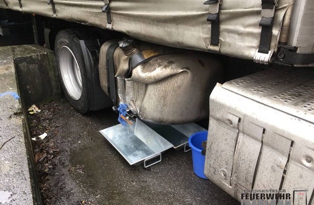 Ein LKW riss sich beim Rangieren auf einem Betriebsgelände im Industriegebiet Rombrock in Sümmern an einem kleinen Mauervorsprung den Dieseltank auf. Circa 80 Liter Diesel liefen vor Eintreffen der Feuerwehr an der Einsatzstelle aus. Die Feuerwehr verhinderte ein weiteres Einlaufen des Diesels in die Kanalisation. Zur Reinigung der Verkehrsfläche wurde seitens des betroffenen Unternehmens eine Fachfirma bestellt. Im Einsatz waren Berufsfeuerwehr und die Löschgruppe Sümmern sowie Ordnungsamt, untere Wasserbehörde und Stadtentwässerung. Zu einem weiteren Dieselaustritt kam es am Nachmittag im Ortsteil Kalthof. Auch hier riss sich ein LKW seinen Kraftstofftank auf. Circa 300 Liter Diesel wurden freigesetzt. Der Einsatz, zudem ebenfalls die Behörden und Fachfirmen nachgefordert wurden, läuft derzeit noch.