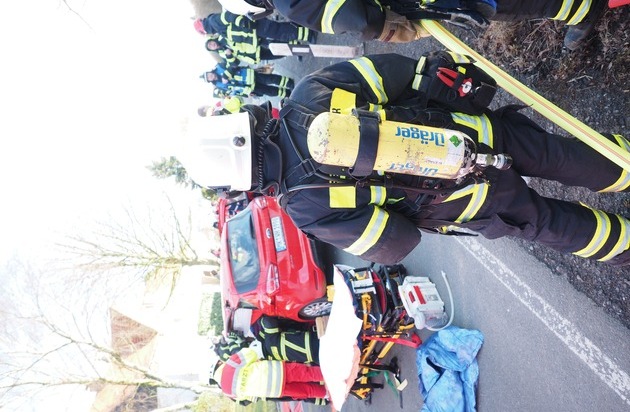 Am Montagnachmittag um 16:38 Uhr ereignete sich ein folgenschwerer Verkehrsunfall, worauf hin zahlreiche Kräfte der Berufs- und freiwilligen Feuerwehr Iserlohn zur Rotehausstraße ausrückten. Die Lage vor Ort ergab, dass zwei PKW, mit insgesamt drei Personen besetzt, verunfallt waren. Eine eingeschlossene Person musste mittels hydraulischen Rettungsgeräten schonend aus dem PKW befreit werden. Alle weiteren Verletzten waren frei zugänglich und wurden erstversorgt. Bereits bei Eintreffen des Rettungsdienstes wurden weitere Rettungsmittel und ein Rettungshubschrauber nachalarmiert. Die Löschgruppen der freiwilligen Feuerwehr Letmathe, Oestrich und Stübbeken stellten den Brandschutz sicher, übernahmen die weitere Betreuung der verletzten und beteiligten Personen und unterstützten sowohl bei der technischen Rettung als auch bei der Verkehrsabsicherung die Kollegen der Berufsfeuerwehr Iserlohn. Auf Grund dessen, das in Iserlohn keine Rettungsmittel mehr zur Verfügung standen, rückten aus den Städten Schwerte und Hemer weitere Rettungswagen an.