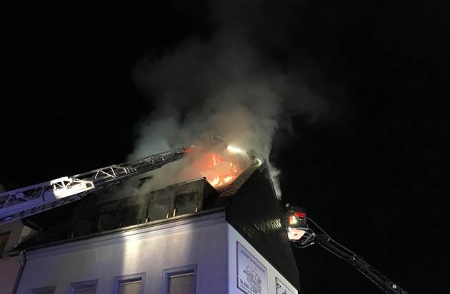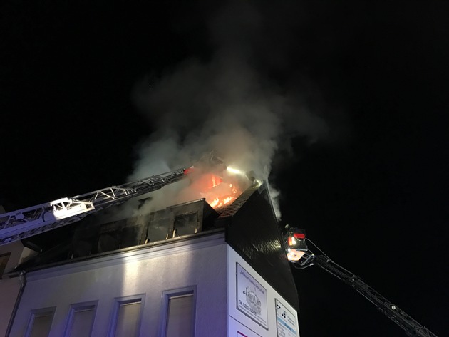 FW-GL: Dachstuhlbrand mit erheblichem Sachschaden in der Stadtmitte von Bergisch Gladbach