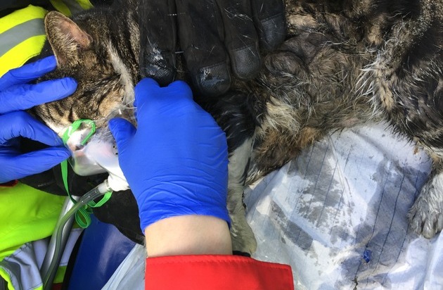 Um an der Gebäudevorderseite den Flammenüberschlag in das 5. Obergeschoß zu verhindern, wurde umgehend ein Strahlrohr über die Drehleiter eingesetzt. An der Gebäuderückseite wurde ein B-Rohr vorgenommen, um auch dort den Flammenüberschlag zu verhindern. Zur Brandbekämpfung in der Wohnung wurden zwei Strahlrohre im Innenangriff über das Treppenhaus eingesetzt. Vom 4. bis 7. Obergeschoß wurden alle Wohnungen kontrolliert und die Bewohner ins Freie verbracht. In der Brandwohnung befanden sich bei Brandausbruch drei Katzen, wobei zwei Katzen im Laufe des Einsatzes gefunden und durch den Rettungsdienst mit Sauerstoff versorgt werden konnten. Beide Katzen wurden umgehend mit einem Einsatzfahrzeug der Feuerwehr zu einer Tierarztpraxis transportiert. Die dritte Katze konnte bisher nicht gefunden werden.