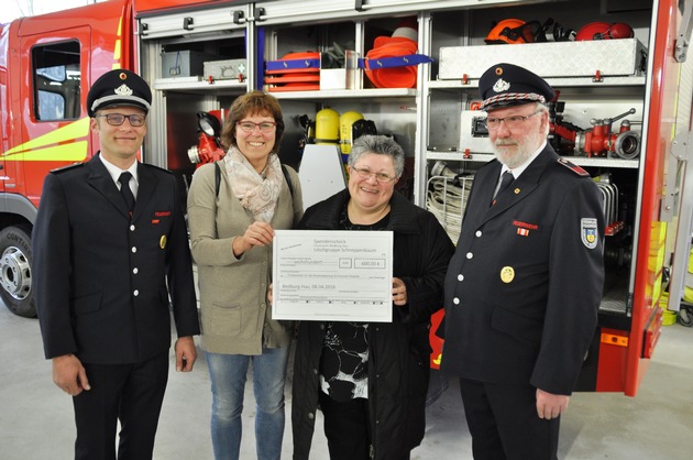 Den Betrag hatten die 27 Mitglieder der Einheit zu Beginn des Jahres auf ihrer Jahreshauptversammlung zusammengetragen. "Wichtig ist uns, dass das Geld für Kinder in unserer Umgebung Verwendung findet", so der Einheitsführer Hauptbrandmeister Michael Scholten. Sein Stellvertreter Brandinspektor Christoph Howald ergänzt: "Wir wollen erkrankten Kindern den Krankenhausaufenthalt leichter machen und zur Genesung beitragen".
