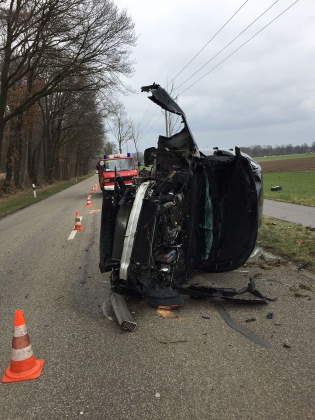 Fahrzeug prallt gegen Baum und schleudert über die Fahrbahn