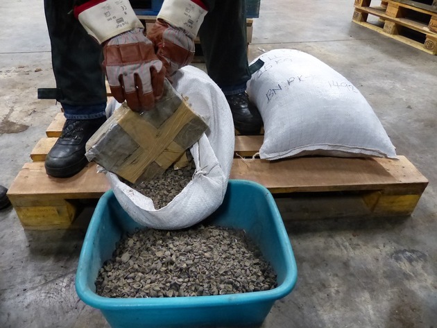 Bereits am 5. Dezember 2014 wurde durch Beamte des Zollfahndungsamtes Essen in Zu-sammenarbeit mit belgischen Zollbehörden im Hafen von Antwerpen ein Schiffscontainer si-chergestellt, in dem sich mehr als 3 Tonnen Marihuana befanden. Das Rauschgift war in einer Tarnladung Palmkernschalen aus Ghana versteckt. Palmkernschalen sind ein Nebenprodukt, das bei der Herstellung von Palmöl entsteht und z.B. als Biomasse zum Heizen verwendet wird. Das Marihuana, das sich in Folie, vakuumeingeschweißt in 450 Säcken mit losen Palmkernschalen befand, verkörpert in Deutschland einen Straßenverkaufswert von rund 30 Mio. Euro.