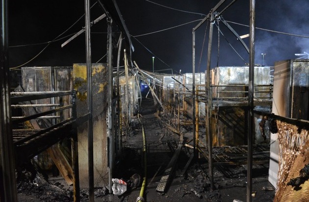 FW-GE: Feuer zerstört Flüchtlingsunterkunft in Gelsenkirchen