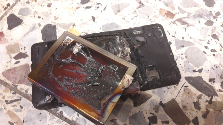 Heute gegen 14:34 Uhr alarmierte eine automatische Brandmeldeanlage die Feuerwehr Gelsenkirchen in die Emscherstraße zu einem SB-Warenhaus. In der dortigen Serviceabteilung hatte eine Kundin ein Handy abgegeben das im Bereich der Rückseite eine Beule bekommen hatte. In ein Regal abgelegt fing das Handy plötzlich an zu qualmen und Funken zu sprühen. Als die Mitarbeiterin das Handy vom Regal auf den Boden warf, zerlegte es sich mit einem lauten Knall und rauchte ab. Der entstehende Brandrauch löste die Brandmeldeanlage aus. Die eintreffende Feuerwehr brauchte nur noch kurz lüften und die Brandmeldeanlage zurück stellen. Somit war der Einsatz nach knapp 30 Minuten beendet.