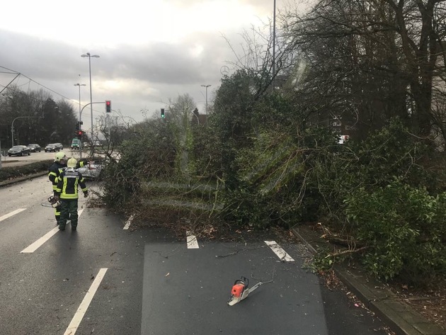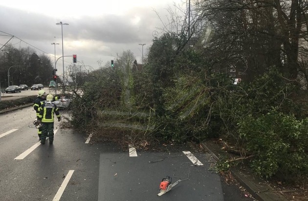 FW-GE: Zwischenbilanz der Feuerwehr Gelsenkirchen nach dem Durchzug von Sturm "Friederike". - Rund 270 sturmbedingte Einsätze bis zum Nachmittag.