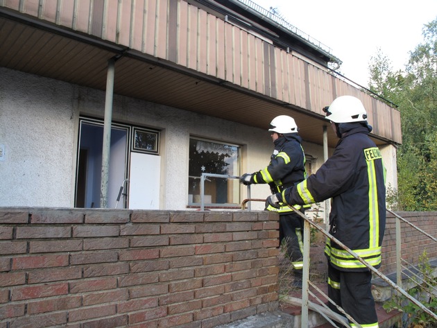 Am Nachmittag wurde dann eine starke Rauchentwicklung aus dem ersten Obergeschoss eines Wohnhauses in der Arnsberger Wolfsschlucht gemeldet. Daraufhin wurde um 17:29 Uhr ein Großaufgebot von Einsatzkräften mit den beiden Hauptwachen sowie den Wehren aus Arnsberg, Rumbeck und Oeventrop zum Brandort gerufen, da zu diesem Zeitpunkt davon ausgegangen werden musste, dass sich noch Menschen in dem Gebäude befinden. Wie sich im Rahmen der Erkundung herausstellte, war das Gebäude jedoch unbewohnt. Im Obergeschoss brannte ein Sofa, das durch einen Einsatztrupp unter schwerem Atemschutz schnell gelöscht werden konnte. Nach der Lüftung des Gebäudes mit einem Hochleistungslüfter konnten die rund 40 Einsatzkräfte, die mit mehreren Löschfahrzeugen 45 Minuten vor Ort waren, wieder abrücken. Verletzt wurde bei diesem Brand niemand.