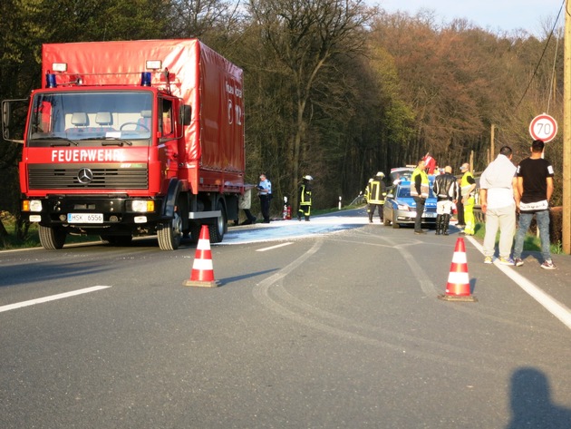 FW-AR: Voßwinkeler Feuerwehr nach Verkehrsunfall im Umweltschutzeinsatz