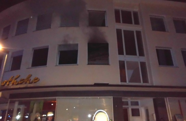 Beim Eintreffen der ersten Einsatzkräfte drang dunkler Rauch durch Fenster im Obergeschoss des Wohn- und Geschäftshauses nach draußen. Die Bewohner der benachbarten Wohnungen hatten zu diesem Zeitpunkt bereits das Gebäude verlassen, hatten sich hierbei allerdings eine Rauchgasvergiftung zugezogen. Alle Bewohner wurden umgehend vom Rettungsdienst versorgt und betreut.