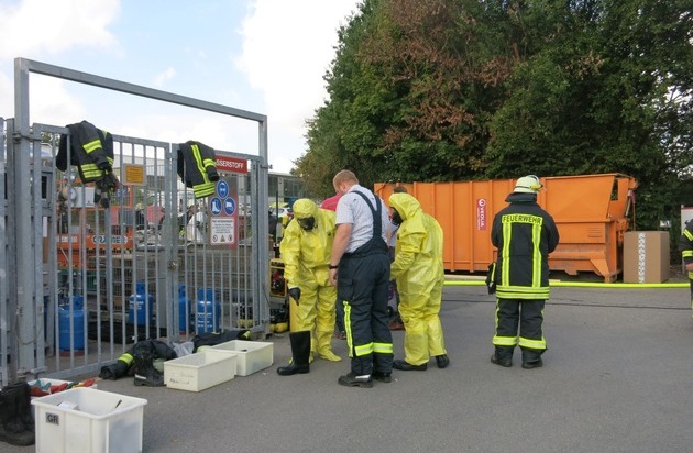 Neheim. Am Montag, den 26. September rückte der Basislöschzug 1 der Arnsberger Feuerwehr mit den Einheiten aus Neheim und Voßwinkel zu einem Gefahrguteinsatz bei einem Waffenhersteller in Neheim-Bergheim aus. Der Feuerwehrleitstelle in Meschede war um 11:25 Uhr ein auslaufender Gefahrstoff gemeldet worden, wobei Menge und Art der Flüssigkeit zunächst unbekannt waren.