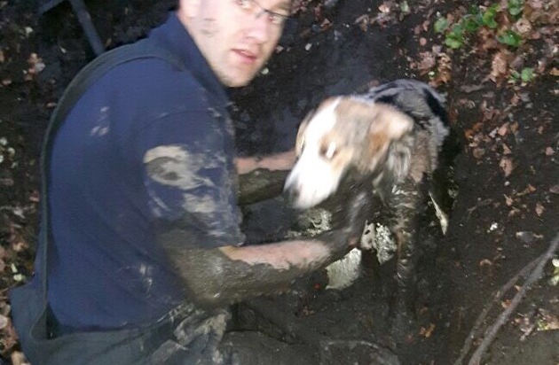 FW-AR: Echte Ausdauer - Feuerwehr Arnsberg befreit Hund aus Schlamm-Rohr