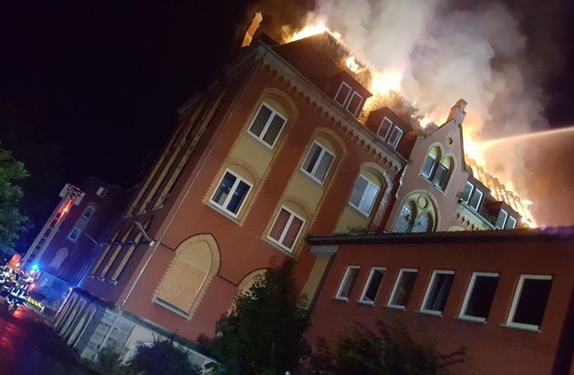 FW-AR: 119 Einsatzkräfte bei Dachstuhlbrand am ehemaligen Kloster in Oeventrop im Einsatz: Feuerwehr kann mit massivem Löschangriff ein Übergreifen verhindern