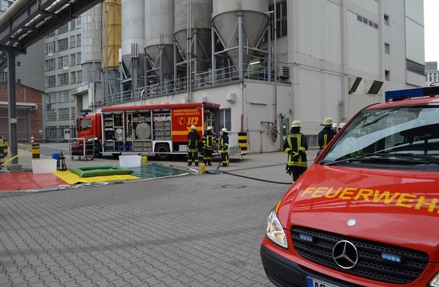 FW-Stolberg: Gesamtwehrübung der Feuerwehr Stolberg auf dem Betriebsgelände der DALLI-Werke GmbH & Co. KG