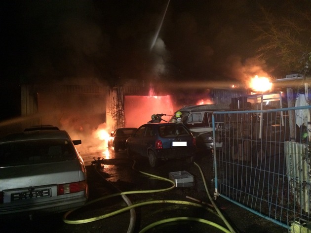 FW-Stolberg: Brand einer Lagerhalle mit Kfz-Werkstatt in voller Ausdehnung